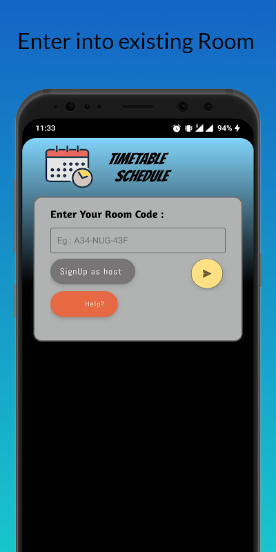 • Timetable Schedule application lets the user(host-user) set Subject-list and lecture timings after which a room-code is generated which then can be circulated among the students.