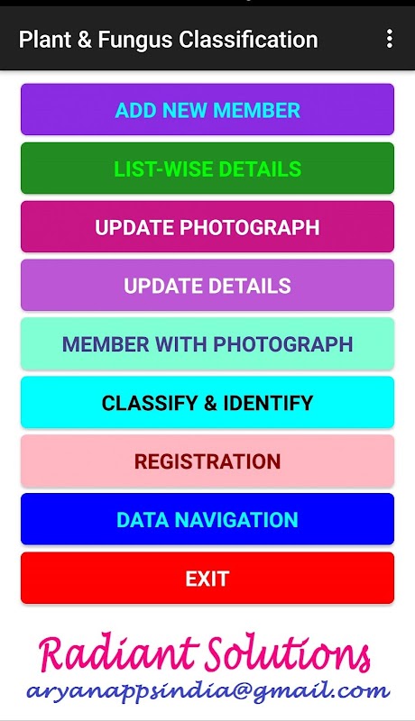 इस एप्प से आवृतबीजी, अनावृतबीजी, ब्रायोफाईटा, टेरीडोफाईटा और फफूंद के 115047 नामों की वर्गिकी की जानकारी प्राप्त कर सकते है.