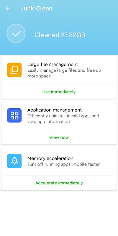 Ia mempunyai antara muka yang ringkas dan elegan serta operasi yang lancar, membantu anda menyelesaikan kad telefon yang perlahan, membersihkan sampah, menyusun album telefon!