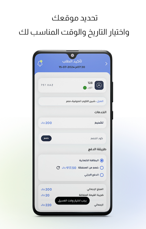 أسهل وأسرع طريقة لتنظيف وغسيل السيارات ، حيث يمكنك إضافة أكثر من سيارة وتحديد موقعك واخريت موقعك واختيار الموقعك واختيار د فيه غسل سيارتك.