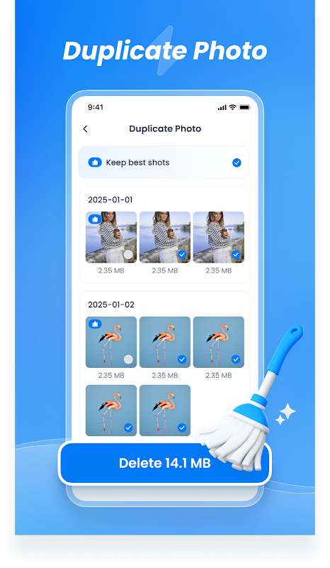 - Pengimbasan foto pendua: Cari dan padam foto berlebihan dengan mudah.