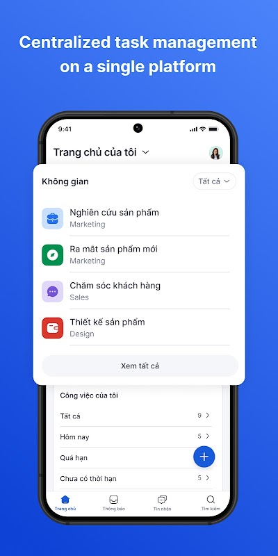 - Mengintegrasikan sembang dalaman, berkomunikasi pada setiap tugas, profil, proses.