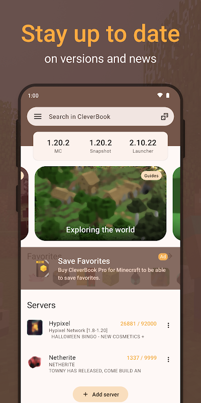 CleverBook ialah apl pendamping pilihan pertama anda jika anda memerlukan bantuan untuk bertahan dalam dunia anda sendiri atau bersama rakan pada pelayan berbilang pemain.