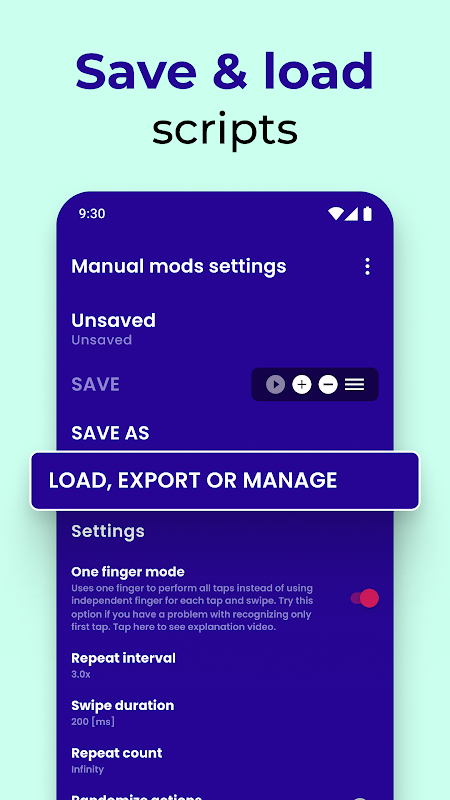 Dengan mode manual, Anda dapat mengontrol klik di aplikasi dan game. Pilih titik di layar, tentukan tindakan seperti ketuk atau geser, dan biarkan keajaiban terjadi! Tingkatkan produktivitas dengan plugin Klikers Otomatis Tugas untuk Games. Buat alur otomatisasi kustom di Tasker atau MacroDroid yang belum pernah ada sebelumnya, manfaatkan kekuatan asisten klik untuk menyederhanakan pengalaman seluler Anda.