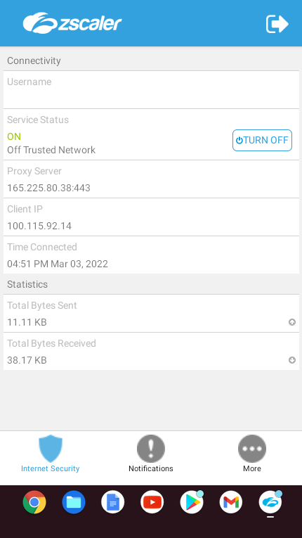 Nota: Penyambung Pelanggan Zscaler digunakan dengan langganan perusahaan aktif kepada perkhidmatan Keselamatan Mudah Alih Zscaler. Sila ikut arahan daripada organisasi IT anda untuk menggunakan apl ini.