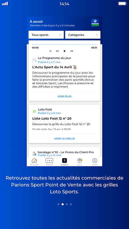 o Berita komersil: Program harian, Pactole Loto Sports, petua komersial, kemas kini aplikasi, pembatalan pertaruhan, dll.