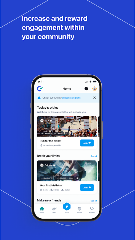 Kedua, anda boleh melanggan salah satu daripada tiga pelan kami, meletakkan anda dalam kawalan untuk mencipta kesan alam sekitar yang sebenar melalui senaman anda. Dalam tetapan (yang boleh didapati pada halaman profil anda), pilih daripada satu daripada tiga pelan impak alam sekitar yang bermula dari serendah £3.49 sebulan.