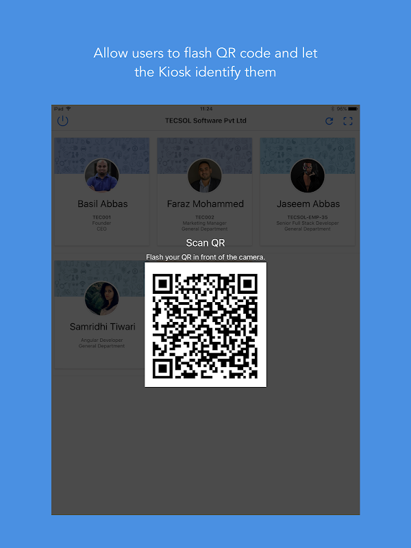 Dengan menggunakan aplikasi ini, pekerja dan pengguna boleh menumbuk masa menggunakan kod QR, PIN ke dalam satu aplikasi untuk beberapa pengguna.