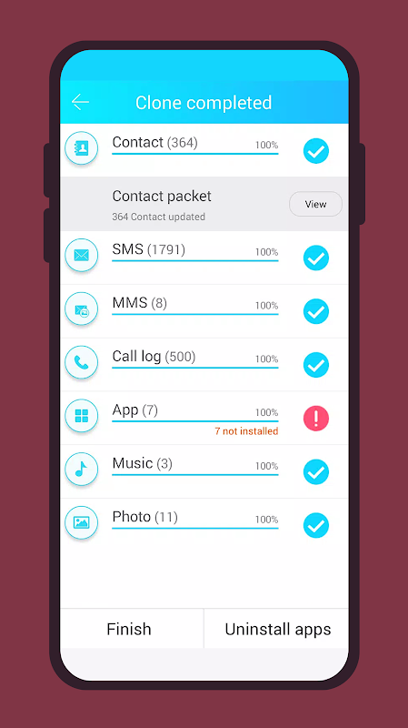 CLONEit boleh memindahkan 12 jenis data mudah alih dari satu telefon ke telefon yang lain dalam dua langkah mudah, tanpa memerlukan kabel, komputer atau rangkaian.