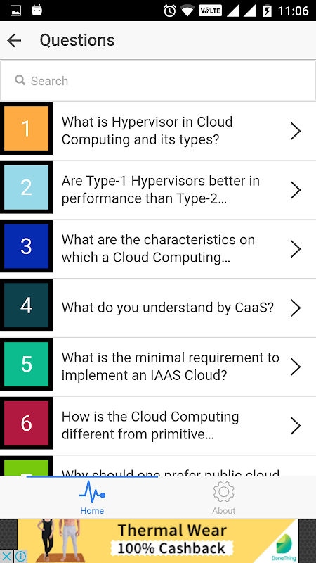Aplikasi ini adalah unik kerana ia membantu anda menguasai soalan yang paling kerap ditanya untuk Pengkomputeran Awan, memupuk anda dengan keyakinan yang anda perlukan untuk bertahan paling sukar temuduga. Permohonan meliputi semua Pelbagai soalan yang meliputi aspek-aspek yang berbeza Pengkomputeran Awan.