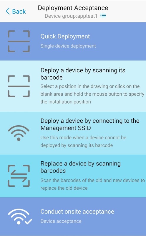 3. Rapid deployment is recommended when a few APs need to be deployed or no drawing is provided for deployment. Scanning the barcode or selecting a management SSID is recommended for campus or common office scenarios.
