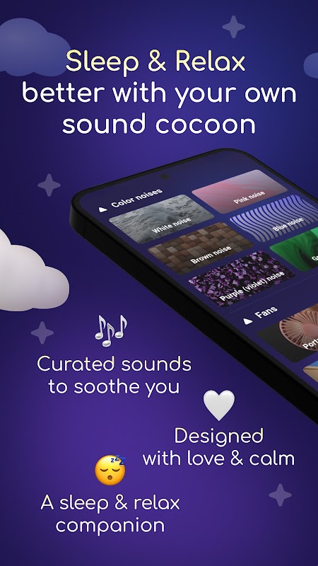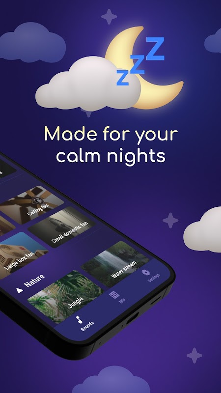 CloudNoise: Fan & White Noise membantu anda berehat, berehat dan tertidur dengan lebih cepat dengan bunyi persekitaran yang menenangkan dan bunyi semula jadi.