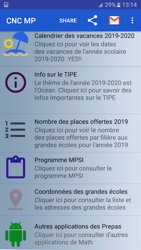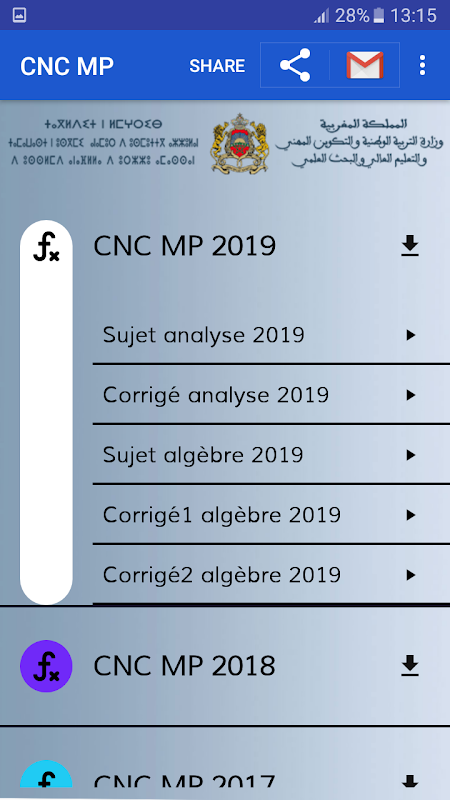 Program kelas persediaan cukup besar dan sukar dan anda tidak perlu membuang masa, aplikasi kami menawarkan kepada anda semua pertandingan umum nasional dalam MP pilihan matematik (CNC) sejak tahun 2000 beserta jawapannya.