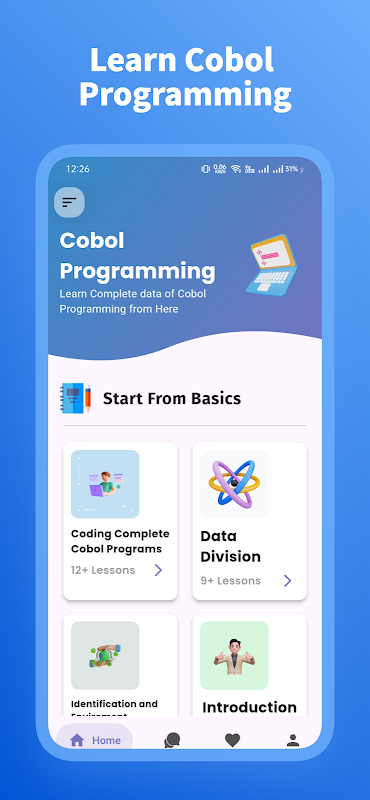 Aplikasi Belajar Pengaturcaraan COBOL ialah panduan utama anda untuk menguasai COBOL, salah satu bahasa pengaturcaraan tertua dan paling boleh dipercayai di dunia. Sama ada anda seorang pemula yang lengkap atau pembangun berpengalaman yang ingin meningkatkan kemahiran anda, aplikasi ini menyediakan semua yang anda perlukan untuk berjaya dalam COBOL.