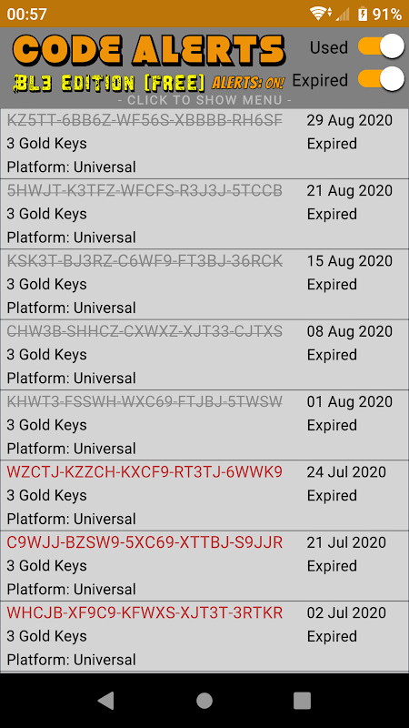 Aplikasi utama untuk mengikuti kod shift terbaru untuk Borderlands 3.
