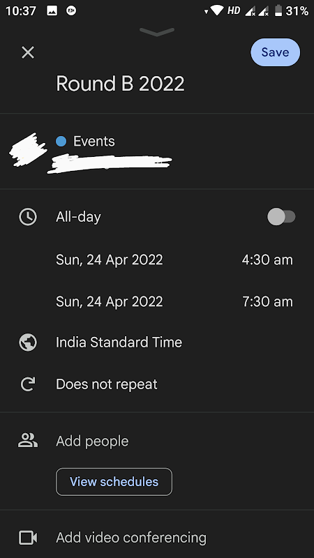 Code Calendar allows you to keep an eye on various CP or competitive programming contests on platforms like Codeforces, CodeChef, LeetCode, Google Kickstart, etc. Use Code Calendar to never miss a contest on these platforms. It supports popular platforms such as Codeforces, CodeChef, Leetcode, AtCoder, etc.