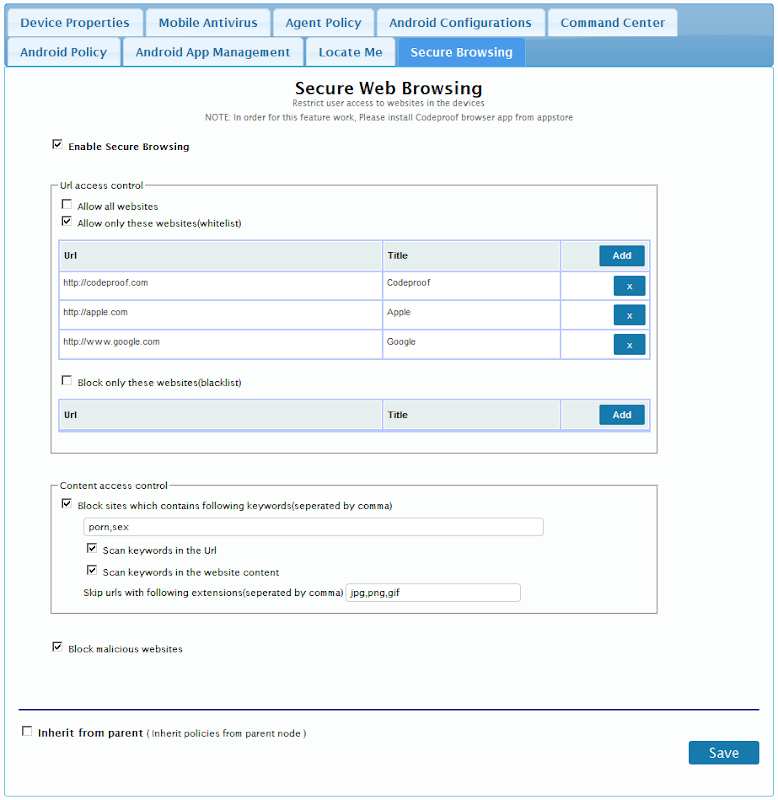 Codeproof browser is part of the Codeproof MDM Platform. Before installing this app, You must signup at http://codeproof.com and install Codeproof MDM app.