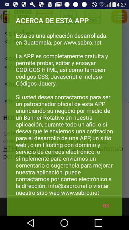 Maklumat APK CODIGO HTML TESTER