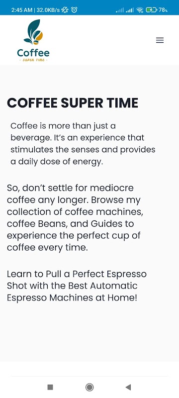 So, whether you're a coffee fan looking to expand your knowledge or a coffee novice in search of guidance, Coffeesupertime.com is the ultimate app for all your coffee needs.