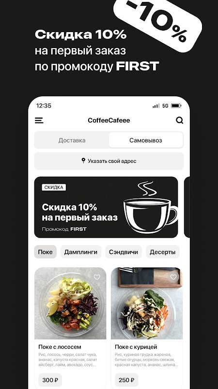 "CoffeeCafeee" adalah aplikasi untuk penghantaran makanan di Yaroslavl