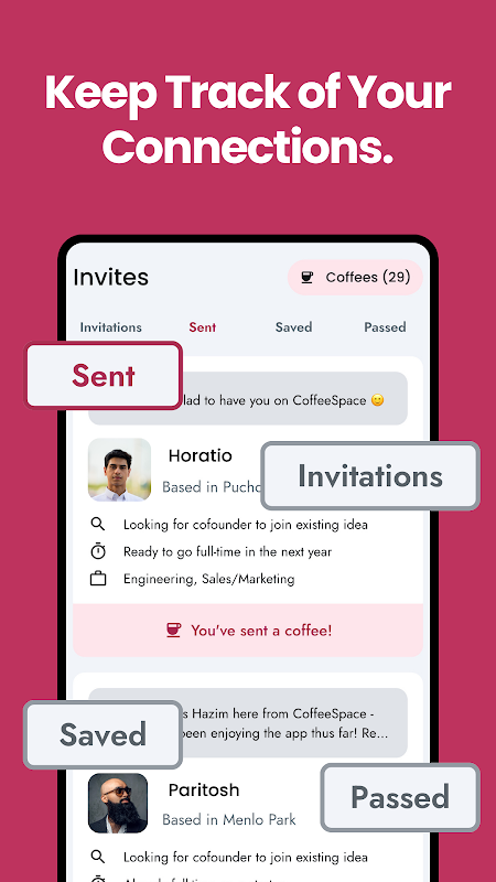 * Jemputan Telus: Kami percaya pada komunikasi yang jelas dan terbuka. Setiap jemputan sambungan kelihatan, memastikan anda tidak terlepas peluang untuk menerokai pengasas bersama, pengasas atau peluang pelabur yang menjanjikan—tiada jemputan tanpa nama, hanya ruang yang tulen untuk pertumbuhan.