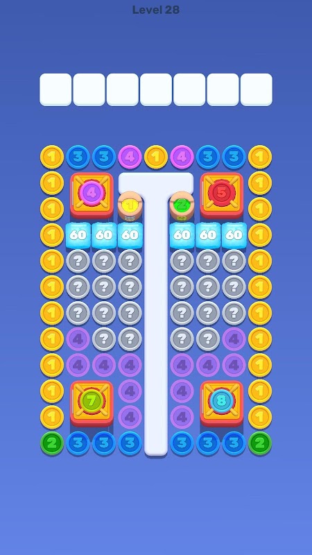 Kumpulkan syiling dari papan dan hantarkannya ke dok anda. Apabila syiling dengan nilai yang sama bertemu di dok, ia secara automatik bergabung menjadi syiling peringkat yang lebih tinggi. Kedengaran mudah—tetapi ada satu kekurangan!