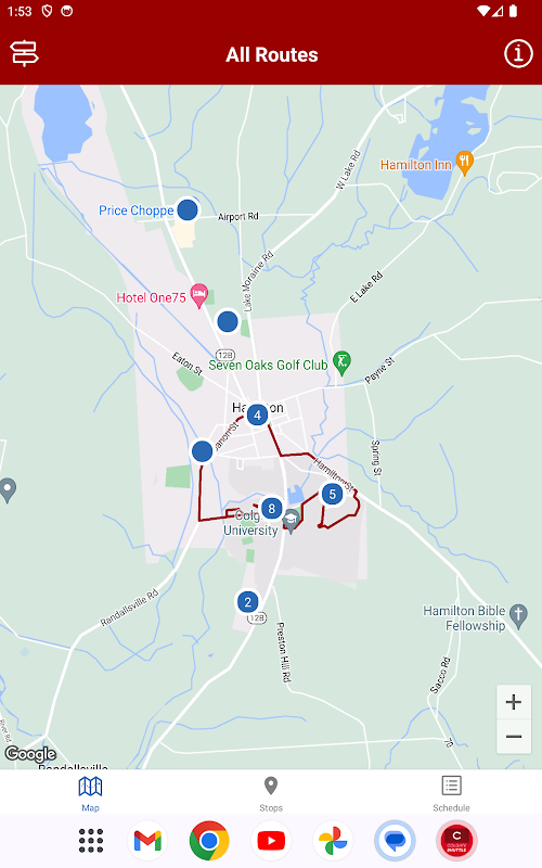Maklumat bas masa nyata untuk perkhidmatan Ulang-alik Universiti Colgate.