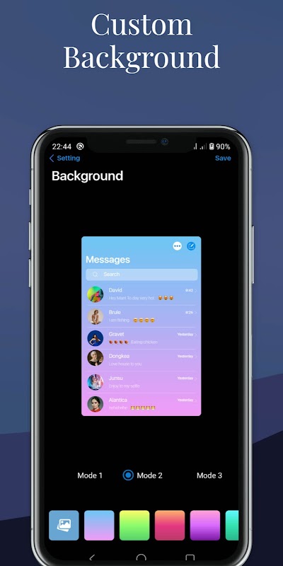 Jawapan mesej cepat, anda akan mempunyai lebih banyak fungsi dalam bahagian Tetapan seperti menukar tema, menggantikan gelembung, menggantikan latar belakang, menukar bunyi mesej, bergetar.