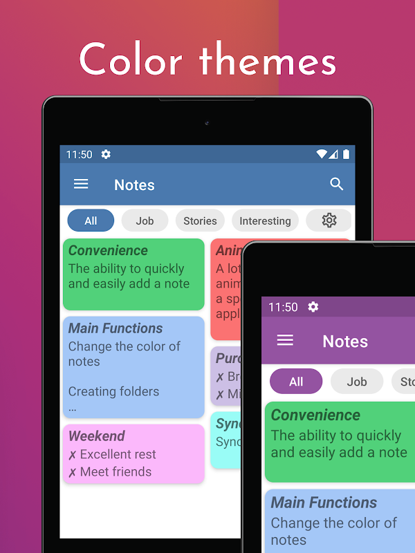 Notepad warna dengan segerak, widget, kata laluan dan cap jari