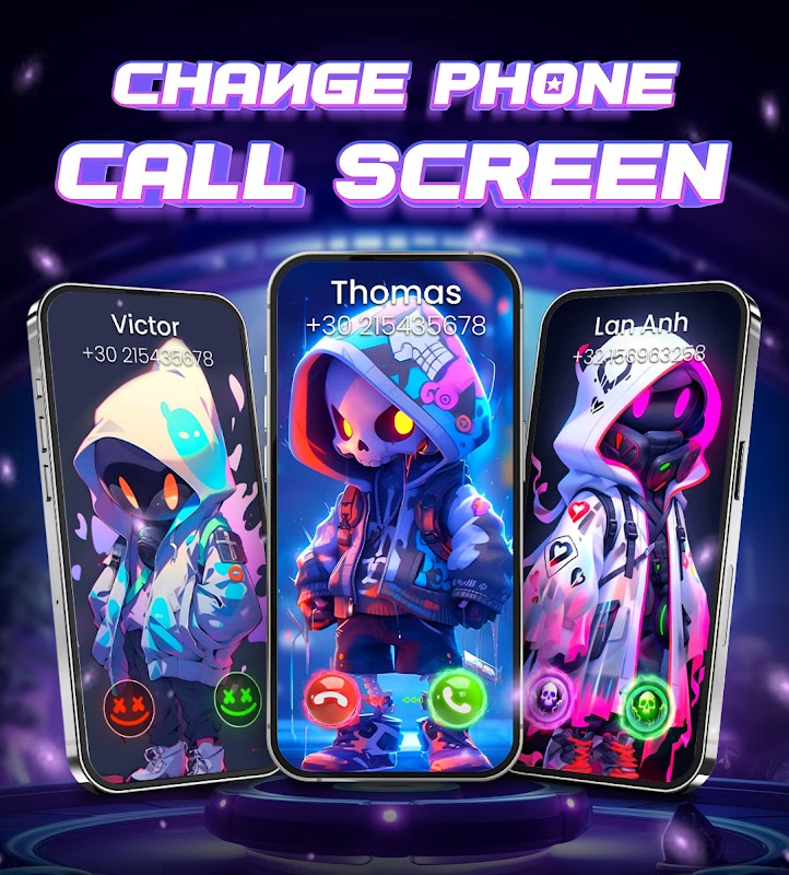Select from over 11 different themes including Christmas, Anime, Animals, and more, all crafted with artistic flair and high-quality imagery. Instantly personalize your call screen for both incoming and outgoing calls with just a few taps.
