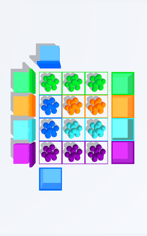 - Tap on the pushers in right order to push all the balls in to their respective colors.