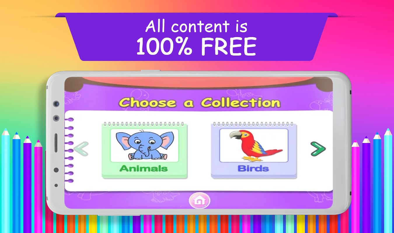 Lebih dari 100 halaman menyeronokkan dengan Haiwan, Burung, Buah-buahan, Sayuran, Rama-rama, Mainan, Ikan, Reka Bentuk, Bunga, Kenderaan.