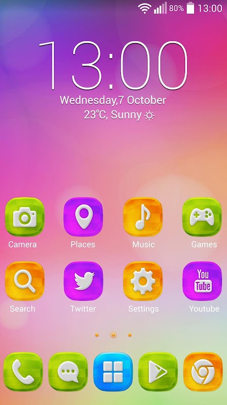 Colors, Colors everywhere. Because we know you love colors you can now customize your gadget with the new, amazing Colors Theme for Solo Launcher. This beautiful Colors theme will cheer you up and will help you to start your day with a big smile on your face. Have fun every time you use your gadget with this unique Colors Theme for Solo Launcher. Your icons will look amazing and you will be proud of your choices. Download this Colors Theme for Solo Launcher and share it with everyone.
