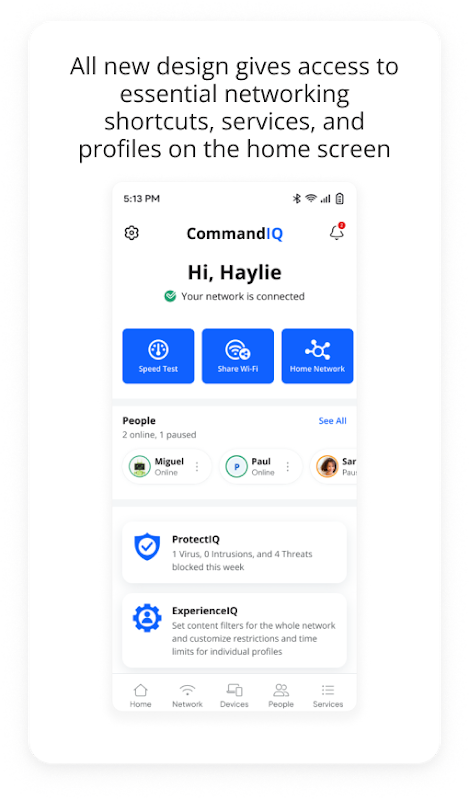 CommandIQ® menyampaikan semua yang anda perlukan untuk mengawal setiap aspek pengalaman Wi-Fi rumah anda. Reka bentuk apl yang mudah dan intuitif meletakkan maklumat yang anda perlukan di hujung jari anda untuk menetapkan keutamaan rangkaian anda untuk prestasi dan keselamatan untuk setiap peranti, aplikasi, bilik dan ahli keluarga.