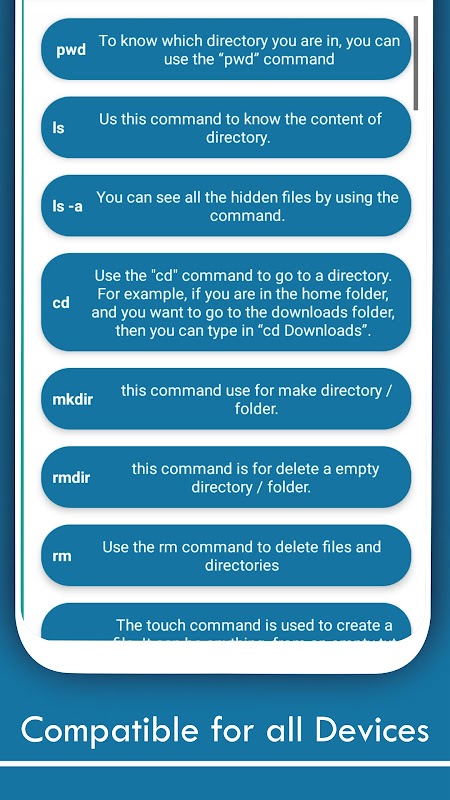 The ultimate app for Linux OS and Windows beginner/advance is here. Commands Guide is simple app, here you can easily find how to use Linux OS and Windows command and learn them youself. Commands Guide: All Windows And Linux Command contains all commonly used Linux & Windows commands (from beginner level, up to pro level) that you need to operate your Linux systems.