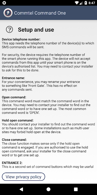 NOTE: You will need to liaise with your entry system installer to have your smartphone added to your entry system's authorised list. You will also need to know the commands or have new commands created in your entry system by your installer.
