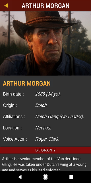 Find all information about RDR 2 (Information about characters, weapons, map...).