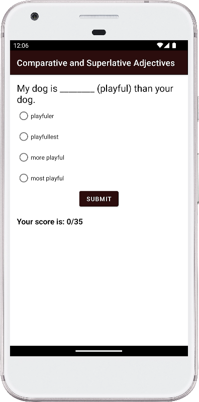 Menguasai kata adjektif perbandingan dan superlatif. Aplikasi mudah untuk pelajar bahasa Inggeris!