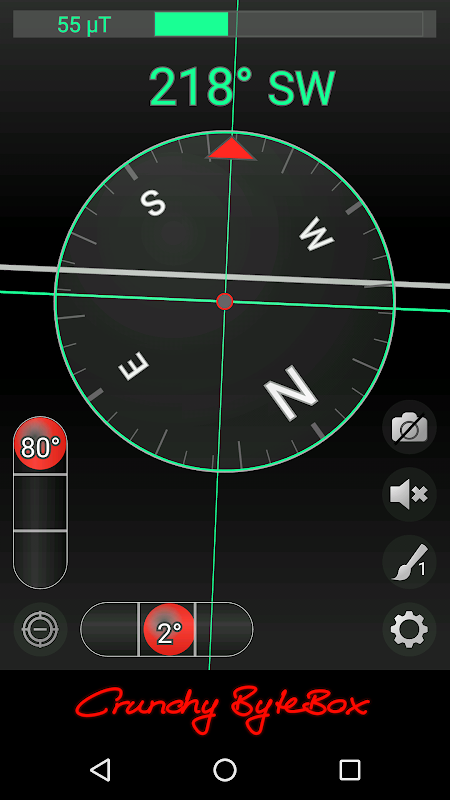 Aplikasi profesional dengan kompas, tahap semangat, medan magnet dan geodata.