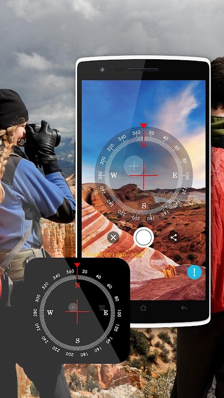 Please keep your device away from magnetic fields, because they interfere with the compass sensor. If magnetic filed turns into the red inverse exclamation mark, you better calibrate compass instantly. Waving your device several times in a figure of 8 motion correctly.If you can not solve it in this way, rotate your device along 3-axis many a time. When using this compass, hold your device flat to the ground with the display facing the sky like you would hold a mechanical compass.