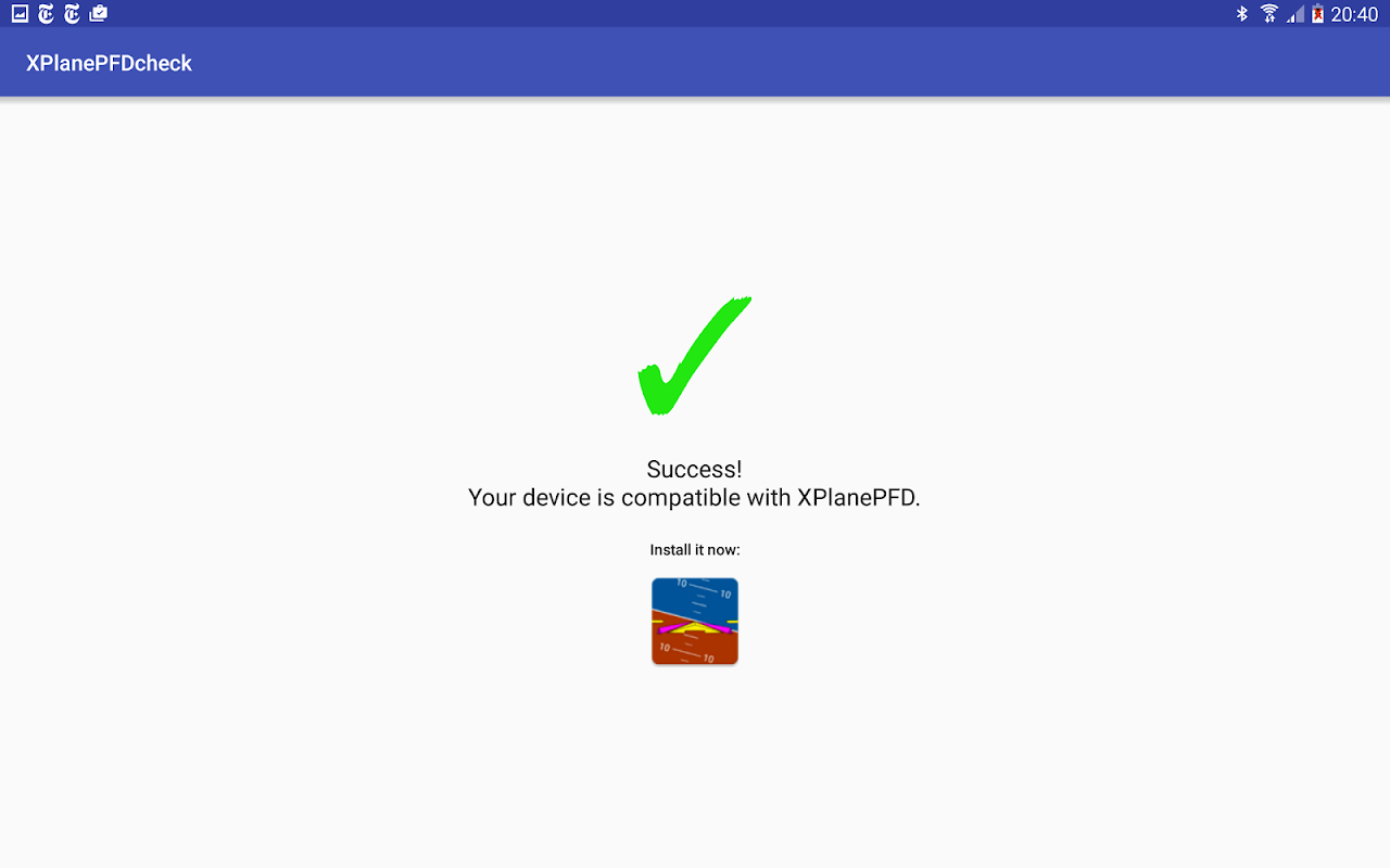 5. If the app gives you a green checkmark, you're good to go! Follow the in-app instructions to install X-Plane Primary Flight Display, or just click here: