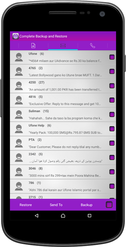 @ Can send contacts,messages and call logs to gmail or google drive.