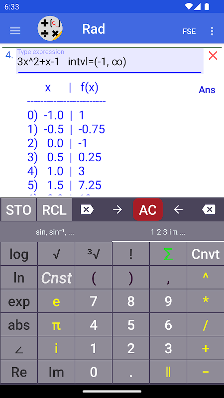 (tekan lama i atau ∠ untuk melihat semua bentuk hasil yang dikira).