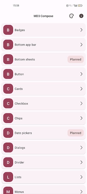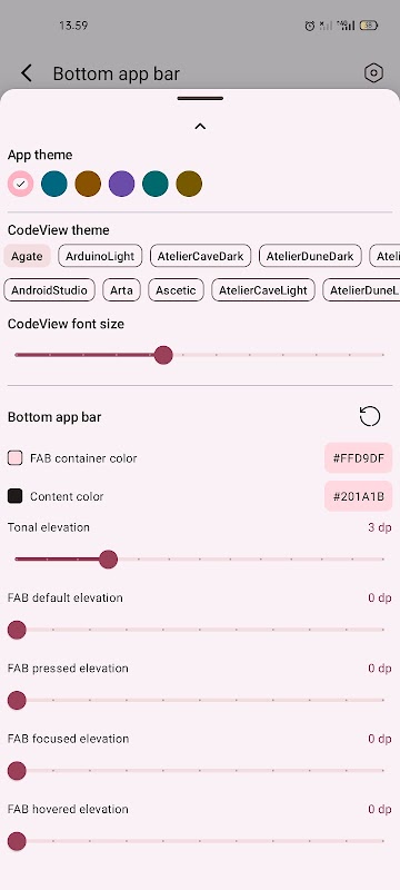 Lihat pratonton Reka Bentuk Bahan 3 dalam apl ini, aplikasi ini juga dibina dengan Karang Jetpack dan Reka Bentuk Bahan 3. Anda juga boleh menyesuaikan warna, ketinggian, bentuk dan lain-lain untuk komponen tertentu dalam apl ini