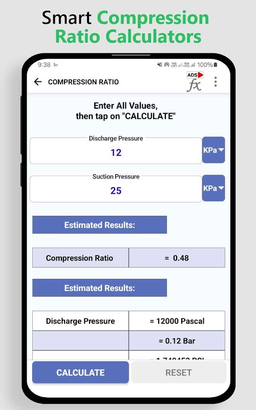 ✔ Pengiraan Nisbah Mampatan Segera – Cepat mengira nilai untuk mana-mana sistem.