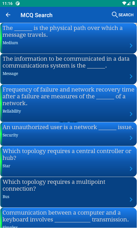 Dengan apl ini, anda akan mempunyai akses kepada pelbagai soalan berbilang pilihan yang merangkumi segala-galanya daripada asas rangkaian kepada topik lanjutan seperti protokol penghalaan, keselamatan rangkaian dan rangkaian wayarles. Anda boleh mengambil kuiz bermasa untuk mensimulasikan tekanan peperiksaan atau meluangkan masa anda dengan kuiz latihan untuk mengukuhkan pemahaman anda tentang konsep utama.
