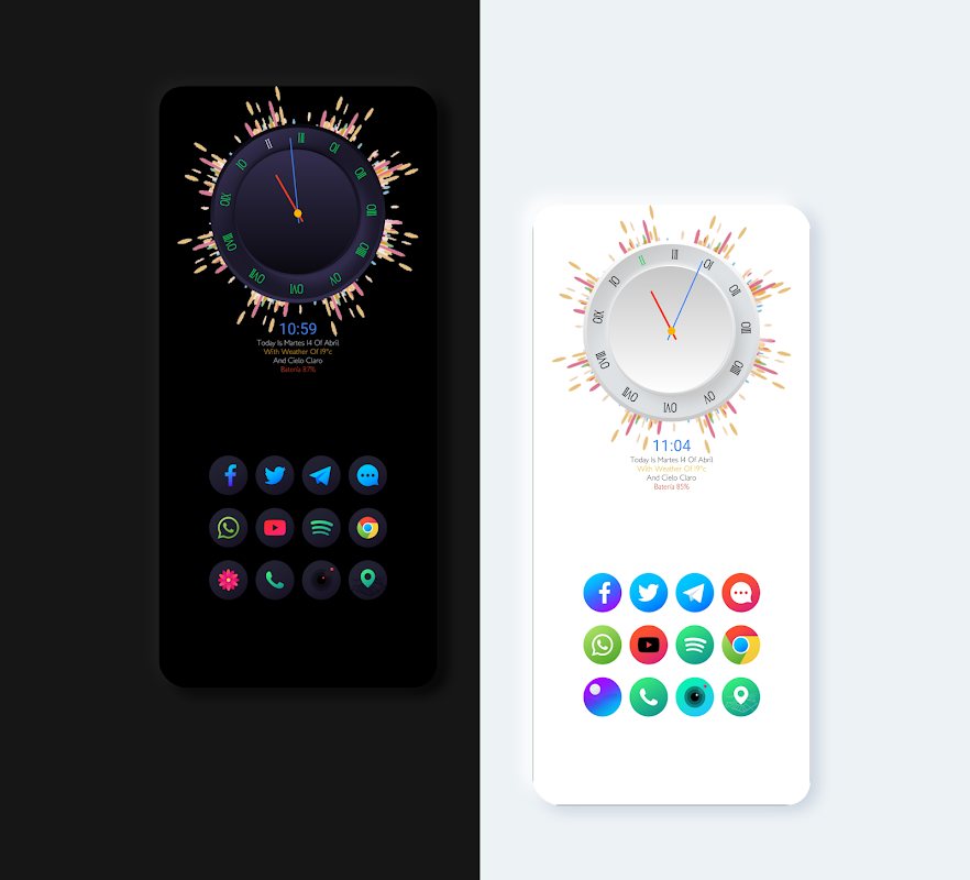 Widget gaya Neomorphism dengan perubahan antara hitam dan putih, mengetuk waktu