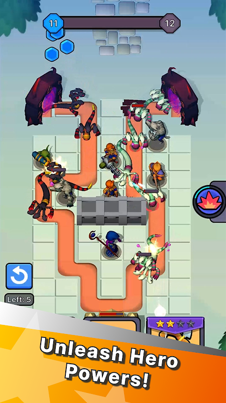 🎯 Penempatan Wira Strategik Letakkan wira anda dengan bijak! Setiap wira mempunyai julat serangan yang unik dan kebolehan istimewa. Pastikan anda meletakkannya di lokasi yang optimum untuk memaksimumkan keberkesanannya dan menguasai medan perang.