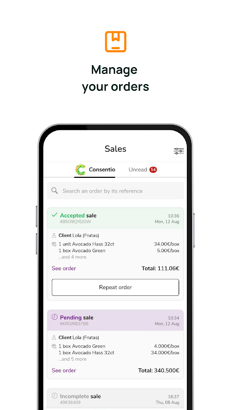Consentio adalah platform digital terkemuka di Eropah yang melancarkan perdagangan dalam industri buah-buahan & sayur-sayuran. Dengan lebih dari 5 ribu pengguna hingga kini yang terdiri daripada pengeluar, pemborong, pasar raya dan perniagaan perkhidmatan makanan, Consentio memberikan nilai yang luar biasa untuk produk segar yang mengubah ribuan 'e-mel', 'unggul' dan 'panggilan' menjadi all-in-one yang dioptimumkan alat pengurusan. Muat turun aplikasinya, dan mulailah memproses pesanan anda dari mana sahaja anda berada, pada bila-bila masa! Anda tidak akan ketinggalan!