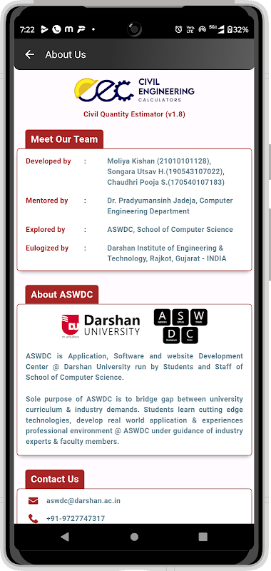 Civil Quantity Estimator mengandungi set kalkulator untuk anggaran Beton Simen, Batu Bata Tanah Liat, Blok Simen, Cat, Baja, Lantai, Dinding kompaun, Melepa, Isi padu Tangki, Penggalian, dll.